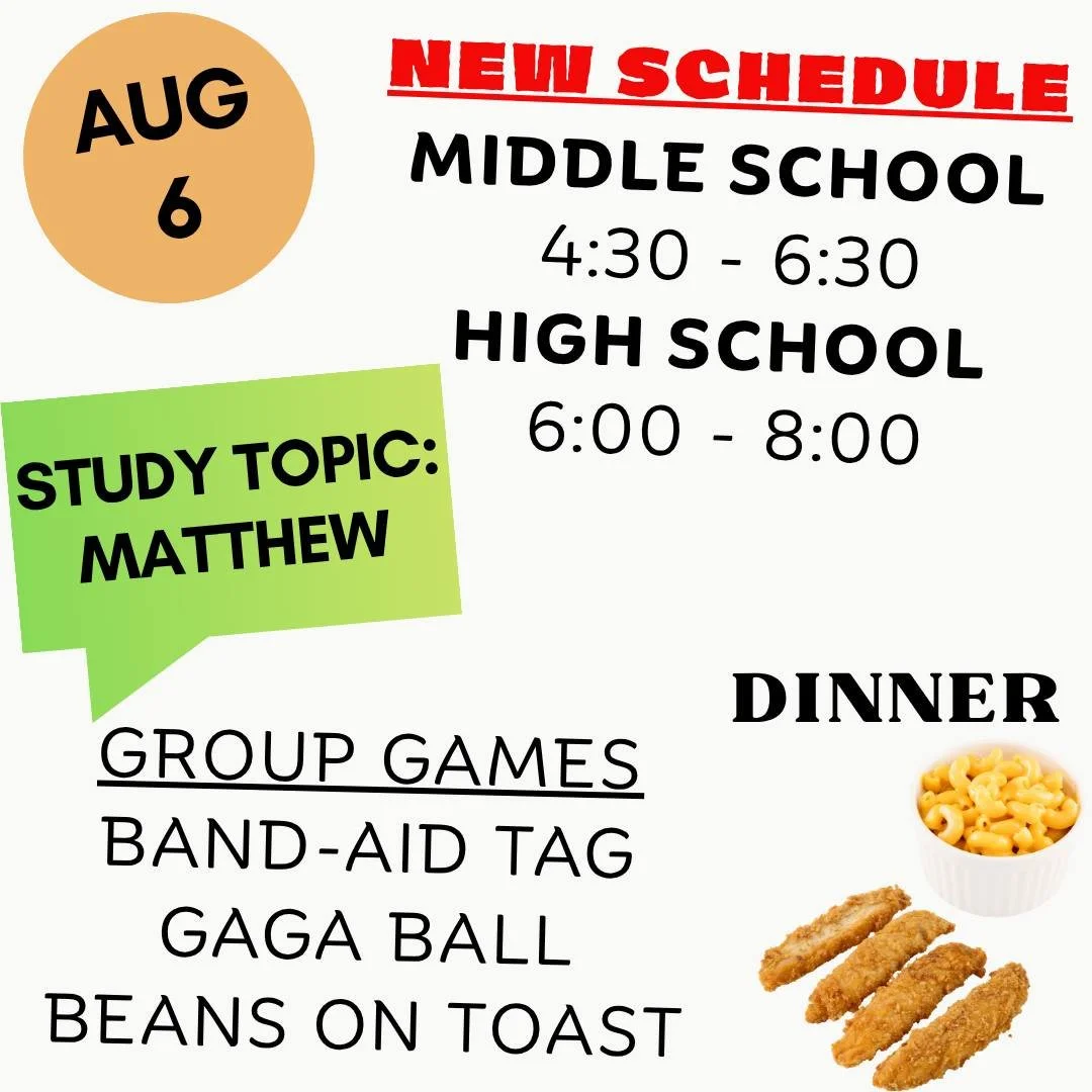Join us on Wednesdays for Bible study, games, and a meal!
